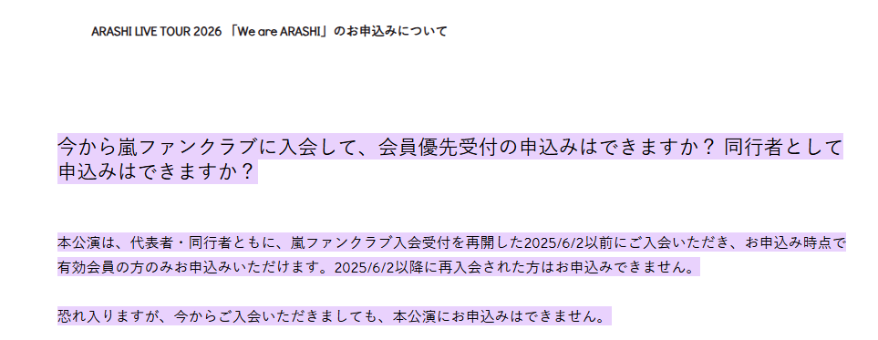 ライブに申し込めないのに、今からFCに入る意味があるのかどうかは個人の選択かなと思います。