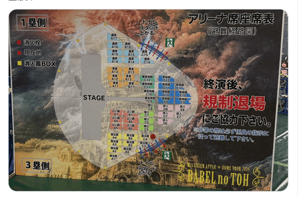 ・スタンド、アリーナのブロック分けの分かりやすい座席表は31通路のところに掲示(いつもは当日HPに掲示されてた記憶だけど今回から現地確認なのかな?