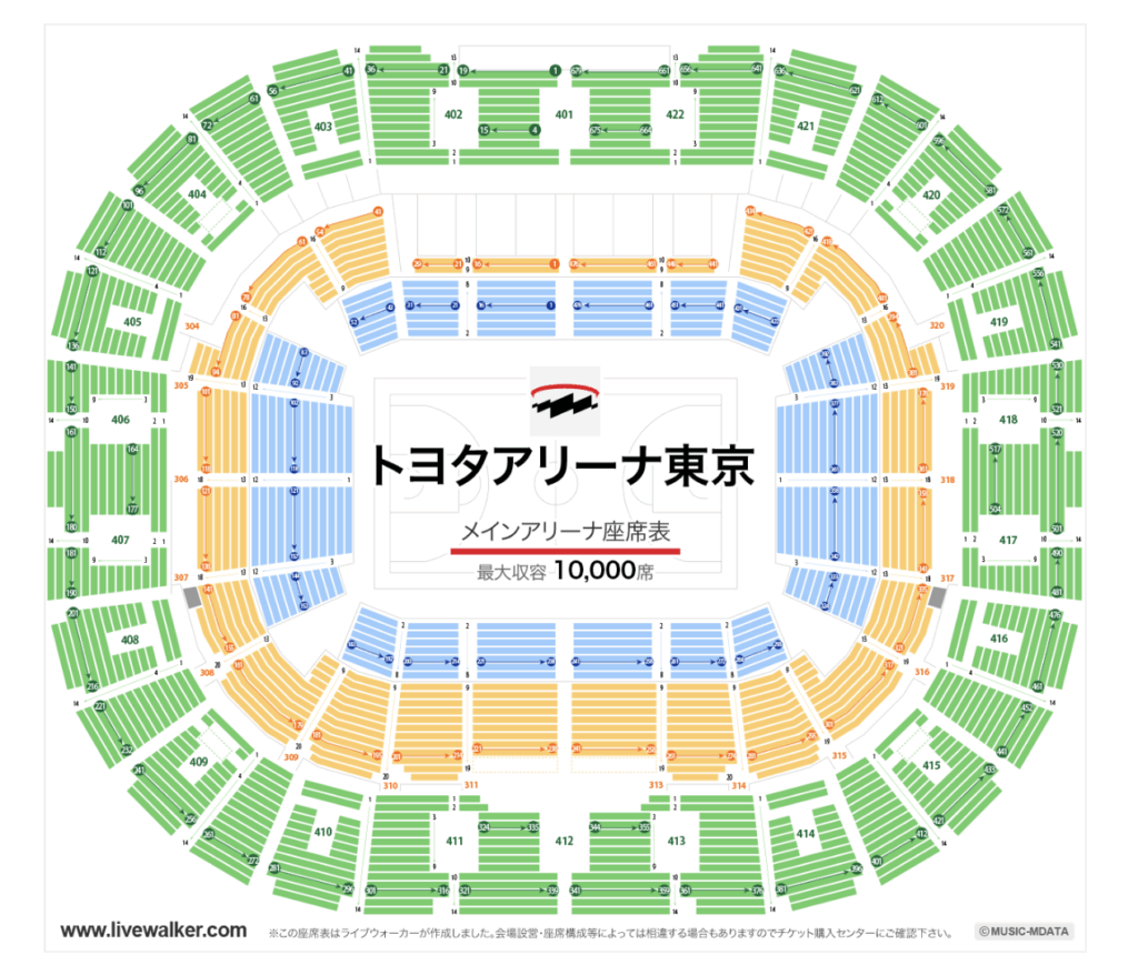 こちらは「トヨタアリーナ東京」のアリーナの座席表になります