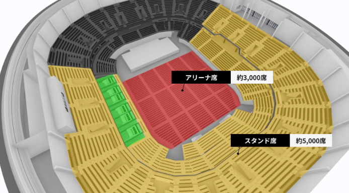 アリーナ席とスタンド席を合わせて約8,000席となります。
