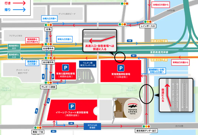 車で向かいたいという方、トヨタアリーナ東京には駐車場がありません。